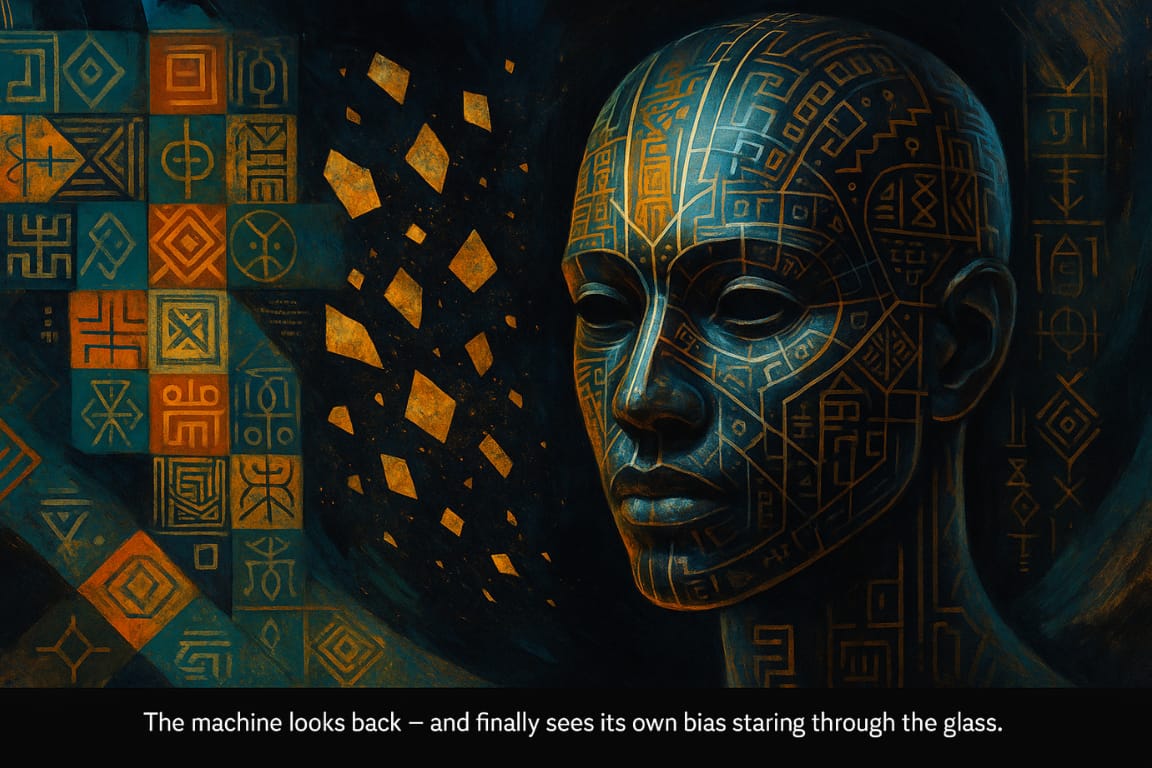 Facial-recognition systems lit for European skin tones fail to register melanin as face. Language models absorb African American Vernacular English (AAVE) as error and accent as anomaly. Search engines rank our histories beneath those who once burned our libraries. Recommendation systems learn to serve us to ourselves through someone else’s gaze.