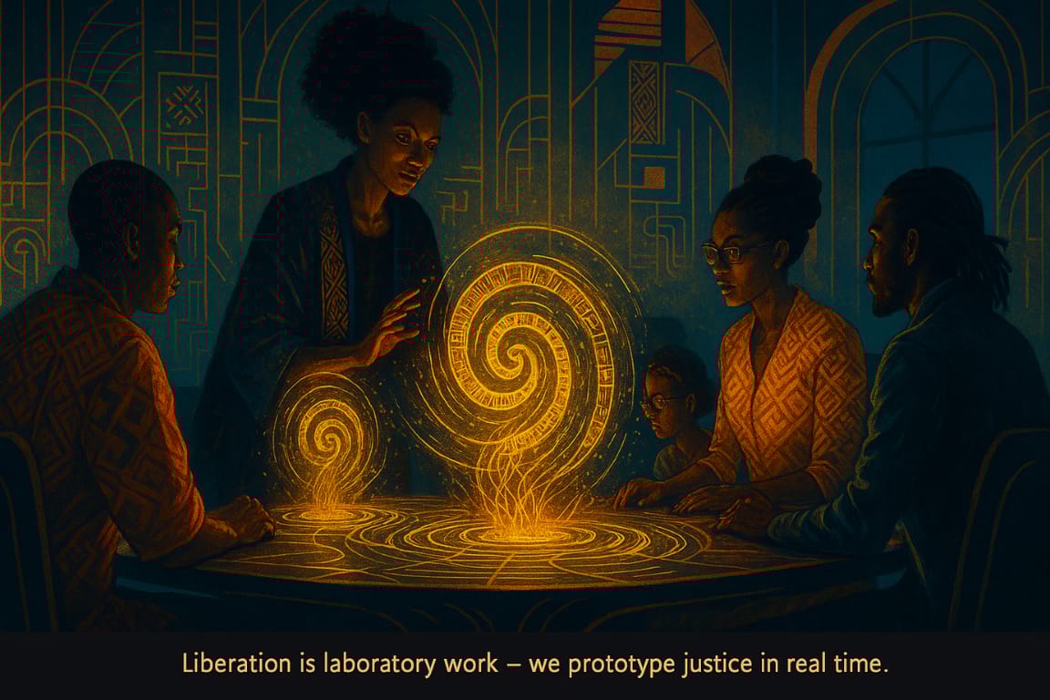 Where Liberation Meets Design. Where Systems Learn to Heal. Where Care, Culture and Code Spiral Forward — together.